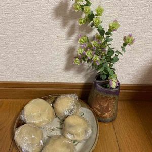 こんにちは🌞 オレガノケントビューティーが咲いたので 🌼生花をして 今日はいきなり饅頭を食べたかったので作りました😁