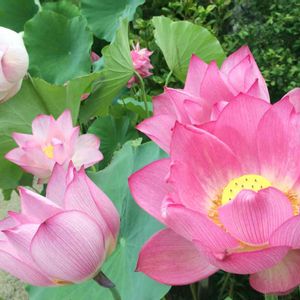 お早うございマス、 うっすら雲があって少~し涼しい朝です🎐皆さんのところはいかがでしょうか。 先日拝見した法金剛院のハス、こんなのもありました ♪ にぎやかな乙女たちのお喋り声が聞こえてくるような☺️?