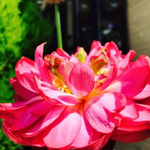 蓮 庭のすみで、ひっそりと蓮の花が咲いていました💕 昔のお釜に植えてあるので、窮屈な所で頑張って咲いてます🎵