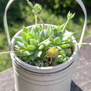 アンブレラプランターの多肉寄せ植えの紅葉がピークです😊マジョールまで紅葉してる🤭 ③マクドガリーの花が咲きました💕 ⭐がいっぱい☺️まだ蕾があるからもっと咲きそうです ④⑤ドドランタリスのニョキニョキの花芽 やっと花が開きました😆スゴイ伸びたね😳 咲いたのが見れたのでカット✂するけどどこからカットすれば良いのかなぁ😅花が咲いたのはやっぱり終わり?