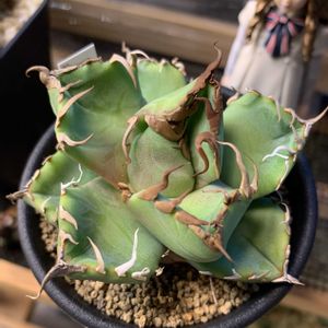 本日は、ビザール旭川のアガベセール初日でした。facebookでの急な告知で驚きましたが。 先週、たまたまカフェスペースでコーヒーを飲みながら、欲しいなーと思いながら眺めていた株(狼人と魔丸)を、セールの勢いで二株購入しました。 このくらいの株の、葉が一枚一枚展開(成長)するのを見るのが楽しい☺️