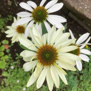 白いエキナセア🌼 パープレアアルバ🎶 やっと開きました😊 昨年は株分けしたので少ししか咲かなかったけど 今年は元気いっぱい🎶🎶 二ケ所で咲いてくれるのも嬉しい~٩(´꒳`)۶