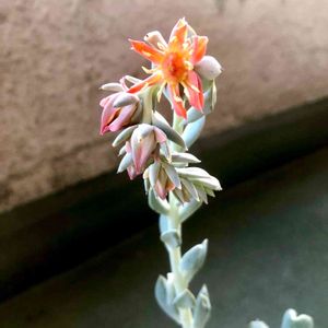 トップシータービーの花が咲きました💕 オレンジ色の可愛い花です。 葉が可愛いので好きな多肉さん。5苗くらいあります😊