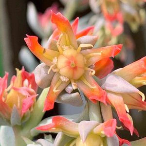🌻お暑うございます🌻 台風10号💨 今までにない かなり大きな台風みたいですね💦 進路にあたる地域の皆さんは 命大事に 早いうちに避難をお願いしますね💦 エケベリアだと思うのですが 二度目のpicです🍀 昨年より早く咲き始めて 咲き続けています😊 1本しか写していませんが 3本花芽があります💐