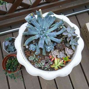 光るオブツーサちゃんと一緒にやってきた多肉盛り達(・∀・) 初めてひとつの鉢にまとめてみたんですが、盛り盛りじゃないからあんまり可愛くない(((( ´ω` ))))w いつかぎゅうぎゅう盛り盛りの寄せ植えやってみたいなぁ(*´艸`) で、この方々お名前が全然わかりません! 一応後列右は秋麗?前列左は桃太郎??と予想してるんですが自信はない(′・ω・`) みんな淡めのお色で可愛い子達です(*´˘`*)♡ 特に真ん中の葉っぱが反り返ってる子は個性的だなーと思って気になってますw これかなーってのがあれば、ぜひ教えてくださいね٩( 'ω' )و