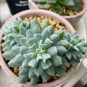2回目ワクチン翌日💉少し全身が痛い…💊 以前娘に作った寄せ植えがヒューミリス以外全部消えていたので😱新たに寄せ植えを作りました🏜️ (新しいの作ってぇと言われた…エー?と言いつつもちょっとうれしい母😚) 同じく夏を越してズタボロの寄せ植えの中から見繕って😅うちで唯一のハオさんをメインに✨シワシワ… こちらは底穴もなく娘の部屋行きなので…まぁ寄せ集め寄せ植えだけどいっか🤭