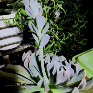 今日の多肉事✨ 昨日入荷した、トップシータービー、ルヨンニー、謎エケベリアと、オリビアで寄せ植えしました😉 隙間に、パープルなんとか(忘れちゃいました💦)と、セダムローズを☺️ セダム以外は、全部ダイソーです😆👍 そうそう、さすがというか、繁殖力の強いトップシータービーさんですね。 植え替え時に、土を落としたら既に子株が3個も隠れてました😲 あと、近くにカインズさんができたので覗きに行ったら、前から欲しかったルビーネックレスさんがいたので、お迎えしました。 とりあえず、土とポットの入れ替えを。 ちょっと元気がないですが、モリモリ増えてくれること願います🥰 ルビネさんで、ネックレスの日参加させて下さ~い🖐️🖐️