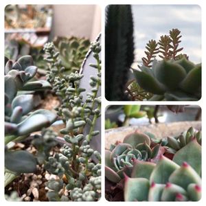1年前に寄せた、男前寄せ… 黒法師が、立派になったね〜(´ー`*)ウンウン 夏には葉っぱが1cmぐらいにまでしょぼくなっちゃって心配したけど、 そういうものなのかな?😲 ブルービーンも、親株は消えちゃったけど、 子株が生き残ってくれてよかったε-(´∀`;)ホッ