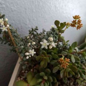 多肉寄せ、わさわさ選手権📣📣 (k多肉寄せ2019年4月~) 初夏の部の優勝は、🏆🏅🎖マルバマンネングサ(丸葉万年草)でした😂 虹の玉が見えません😂 木立性ブレビさんは、花が咲いております🤩
