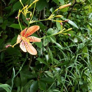 昨年は3本だったのに…… 今年は1本だけ でも、咲いてくれて嬉しい♪( /^ω^)/♪♪♪ ヒオウギ(檜 扇) 花言葉「誠 意」「個性美」 種がブラックベリーに似てることから 「ブラックベリー・リリー」と呼ばれる事も……