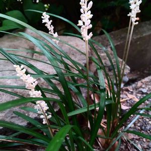 🐦さんからのプレゼント(?) 落し物 (笑) 木陰の「ヤブラン」 花が白いョ~~❀❀❀❀❀ 色が変わるのかなぁーಥ_ಥ ???