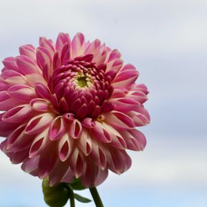 ダリア 「つむぎ」ちゃん (キク科) 募集されて、町田市在住の方が命名されたようです。 花の咲き方がボールの形をしたものを、ポンポン咲きダリアと呼ぶそうです。とってもかわいい💕 町田ダリア園にて撮影📷