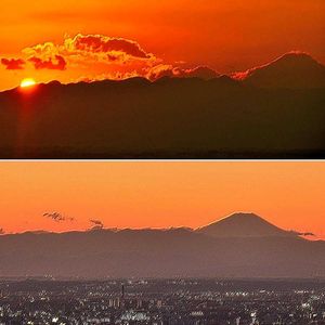 番外編 丹沢山系に沈む夕日です🌇🗻 夕焼け空がとってもきれいでした🙌
