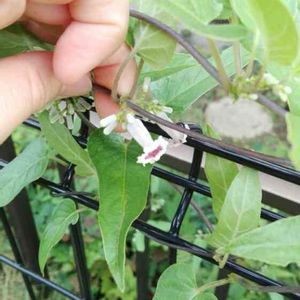 フェンスに!朝顔の様な葉っぱですが花が変この花何