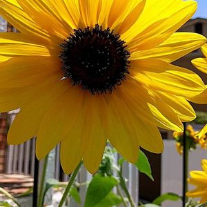 湿度が高かったりで 葉っぱに病気が付いてたけど それでも元気に脇芽もいっぱい 花芯が黒いパンクのヒマワリ🌻