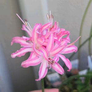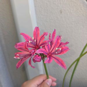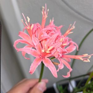 ネリネ 千寿姫 小森谷ナーセリーさん作出のネリネが開花しました😍😍 千寿姫は昨年初めて花芽が上がりましたが、作業中に折ってしまったので今年は花が見られて嬉しいです😆😆 花はやや小柄ですが、嬉しい花色ですね😍😍