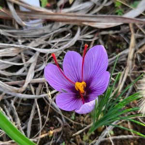 サフラン(Saffron) Crocus sativus 今年は畑に植えていたサフランが開花しました😍😍 パエリアが食べたくて2022年に植え付けて以来、ほとんど咲かなくなったのでサフランの存在すら忘れてそばにヘメロカリスを植えていました😅 もしかしたらヘメロカリスのお陰で地温の上昇が抑えられたことが今年の開花に繋がったかもしれませんね😆😆 ちなみにスパイスのサフランは写真1枚目に写っている赤色の雌しべを乾燥させたものです! サフランというとスパイスのイメージが強いですが、花もとても綺麗で観賞価値が高いですね!