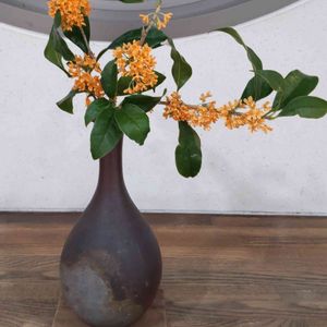 2023年10月18日 花壇のキンモクセイを エントランスに3作品 飾り、残り1作品 今夜投稿します 縦に凛と活けました 10月も終わりに近づいて お疲れ様です 凛と活けたキンモクセイを見てお元気になって くれたらいいな〜😅… 本当に甘〜い香り💞 備前焼 🍁🍂🍁🌰🍂🍁🍂🌰