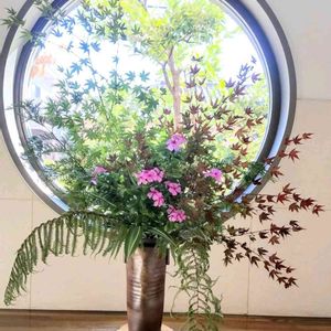 季節折々の野草が大好きで 自己流で楽しんでいます 是非身近な草花を生けて 投稿してみませんか。 宜しくお願い致します😄 静岡市郊外の山に行き もみじ🍁 シダ ヒノキの小枝 ニチニチソウ