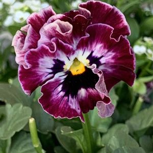フリル咲きビオラ ティアードを植えました えんじ色と赤が、すみれ、パンダすみれ🐼も 元は皆んな⁉️青い原種すみれからだよね
