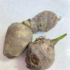 2023.4.23 主に鑑賞目的でwサトイモを植えたくて豚汁作った時のサトイモを取っておいたのすっかり忘れてました。 思い出してふくろを開けたらちょうど発芽してました🤗