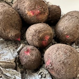 畑に里芋の親玉を植えに来た方とお会いしたら、「親玉、食べてみる❔ 少し硬いかも。」と言ってくださいました。 甘辛く煮て食べたら、もちもち感は少なめだけど美味しかったです。