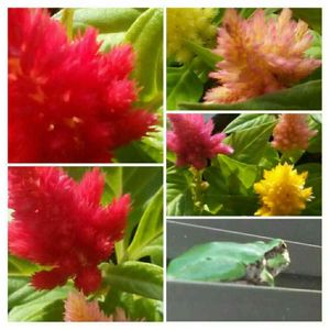 ちっちゃいケイトウと知らんぷりのカエル、ホントは気づいてるんでしょ?