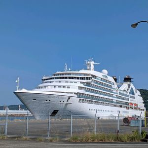 工業港に海上自衛隊の船が寄港していました。一般公開されていて艦内を見学できたようです。 ①最新鋭護衛艦〘のしろ〙 ②掃海母艦〘うらが〙〘ぶんご〙 ③商業港にも掃海艦と掃海艇が10隻寄港していました。