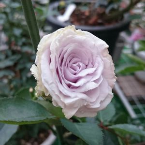 お気に入りのバラは、多肉と同居して温室に入っていて待遇いいです(笑) 雨に当たらないと、黒点出ないからね~ この、グラウンブルーも外は寒いのに、元気に咲いています✨