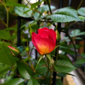 薔薇🌹 クライミングローズ・カクテル(四季~返り咲き)も、一番花が咲いてきました😊 こちらも蕾が沢山付いてます😊