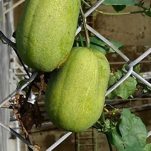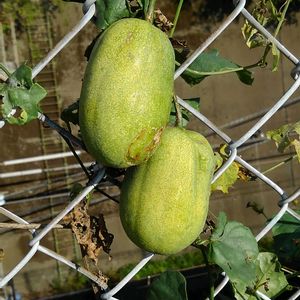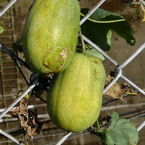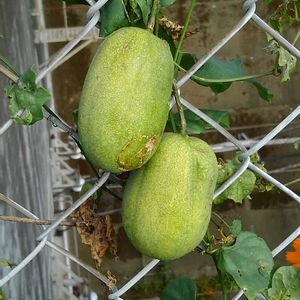キンメツゲの生垣に いつの間にかキカラスウリ(黄烏瓜)の実が出来ていました。😧 カラスウリの実が オレンジ色なのに対し キカラスウリの実は picのような緑色から熟すと黄色くなることから その名が付けられたのだとか…。 以前撮ったキカラスウリの花も一緒にアップします。 カラスウリの仲間は日没後に咲いて 朝には萎れたり 花びらの尖端が縮んでしまったりします。 雌雄異株で夜行性のスズメガが飛来して受粉を助けてくれます。🤗 日本 中国 モンゴルなどアジア原産。 ウリ科カラスウリ属の蔓性多年草。