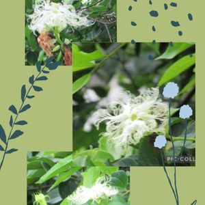 今日のお花*カラスウリ* チャノキに覆い被さるカラスウリ 梅の木に絡んでるキカラスウリ 花はどちらのか?わかりません