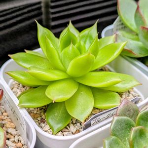 先日、ドライブに行き おしゃれな道の駅では無く 地元密着な感じの 産直屋さんに寄りました たくさんでは無かったけれど 多肉ちゃんがありました 何とゆう種類かな?と 付いている札を見たら 「○○ ○子」と、生産者さんの お名前が、😅あはは とゆう訳で、品種は わかりませんが可愛いいので ふたつ買ってきました〜😄 で、寄せ植えしました。 あら、ザウルス君久しぶり〜