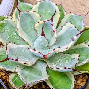 おはようございます🌧️ 昨晩かなり降った… 昼間はムシムシとして暑く… 人も多肉も力尽き…😅😅😅 🏷️2のつく日は斑入りの日 🏷️斑入り見つけ隊♪ 参加します😊 吉祥冠錦さん 若い鋸歯の赤、目を引きます😍 王妃雷神さん 真ん中動いて来ました〜🥰🥰🥰 アガベさんには良い季節になったのかな? マチルダさん 赤くなって可愛い💕 リラシナさん 何だかギュッとして…葉先がピンク 誰かの攻撃か…お日様か… お水あげよう プリンセスさんのベビーちゃん モリモリ増えて下さい😊