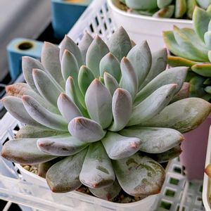 おはようございます🌧️ 雨でひんやりな朝です😊 アガボイデスエボニーモンローさん 染まって来ました〜😍 ブルーのボディにピンクの葉先 目を引きます♪ リラシナさん コチラもピンク🩷 薔薇の様な佇まい…素敵✨✨🥰 スカイデッケリさん こんなミチミチでも夏越しできました えら〜い🥰🥰🥰ココからの成長に期待🥰 もうダメかと思っていた ダークアイスさん 復調の兆し…頑張れ〜😆😆😆 オベサさんの芽 あらら…日焼けしてるね…😓 今日は雨だからゆっくり休んでもらおう😅