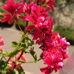 おはようございます☀️ 今朝のお花は ゼラニウム ❤️🩷 1枚目 さくらさくら🌸 と 名無しの赤いゼラニウム GSを始めた2017年の5月からの 古株です❤️ 2枚目 久しぶりに咲いた アイビーゼラニウム エレガンテ もう少し葉っぱもピンクのはず🤔 これから変わるかしら この季節 ゼラニウムもお花がいっぱい🎶🎶🎶