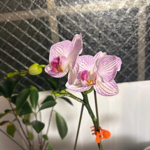 咲いたぁ!! 2年目の開花!! モニターでいただいたミディ胡蝶蘭がまた花をつけました✨️