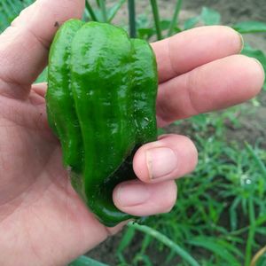 今朝1番で収穫した 今年初物🫑です。 1個ですが、せっかくなのでサラダの中に混ぜて生で頂きます🍴🙏 さて、今日はジャガイモ🥔を収穫します。