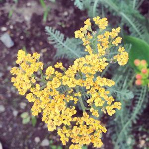 アキレアがいつのまにか咲いていました。 黄色だけど、控えめな花です🌼