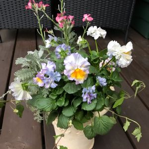 先日購入したしたパンジーをメインに寄植えを作ってみました💐 パンジーアマルフィ ストック シルバーレース メキシカンスイートハーブ 今日は私が外に出るたびに雨が降り、落ち着いて庭仕事が出来ず、室内と外を行ったり来たりでしたね😐