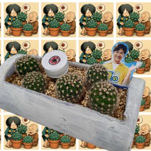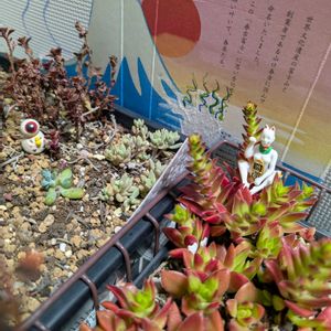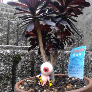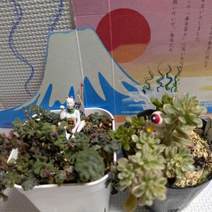 月の雫さんのを 🏷️パクラー このつかまるシリーズの 置き方を教えてくれてありがとう…… さすが雫さんだわ 👀から鱗よ😳💕💕💕 息子が修学旅行で買ってきてくれたミャクミャク缶がやっと使えたわ🤣🤣🤣 添え多肉は Mikiさんから頂いた #ワテルメイエリー錦 先祖がえり始めてますごめんなさい🥲💦 ということは、薬で錦させてるものだったのかね? じゃぁ、わたしのせいじゃない?🤣🤣🤣🤣🤣