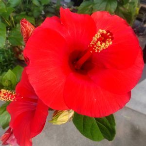 今日は朝から蒸し暑くほとんど曇り空でした 朝起きて庭パトしてたら赤いハイビスカスが5輪咲いてました
