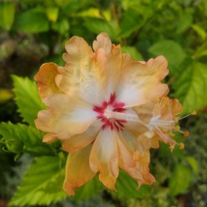 昨日咲いてたハイビスカス🌺 薄雲多めで晴れてます 今朝は朝6時からビニールハウスのビニール撤去 久々に外でお仕事しました 昼からは涼しいお部屋で体調整えよう☺️