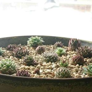 センペルビウムの小型中型の親株さんを やっと植え込みしました 随分と遅くなってごめんね これから夏を涼しく過ごしてもらいます さあ、午後からはお子様達の植え込みです!
