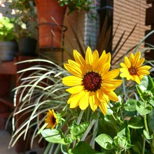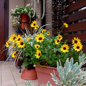 6月24日スタートの1000輪ひまわり‘サンビリーバブル・ブラウンアイガール’ 最初に植えた鉢が小さかったので鉢増ししたところ、二度の植え替えストレスで弱ったらしくハダニにもやられて一時停滞期がありました。 牛乳スプレーでハダニは撃退、その後無事に活着して成長始まりました。 これまでに摘み取った花ガラは20個。 目標100輪達成できるかなあ? ただしこのコ、思った通りものすごい肥料食いです。追肥が忙しい💦