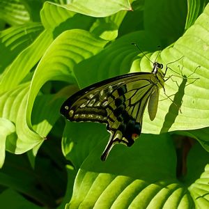 7月の容赦ない陽射しは庭のホスタをみんな焦がしてしまいましたが、この‘サムアンドサブスタンス’だけは木陰にいるのでなんとか綺麗色を維持してます。 雨に濡れた羽を乾かしているのか、アゲハがゆっくり羽を動かしながら日光浴していました。 今年は暑くて蝶の数も少なかったような。この時期に庭の山椒の木に葉っぱが茂っているのは珍しいことです。 今日は晴れて良かった✨ これから墓参に行ってきます。
