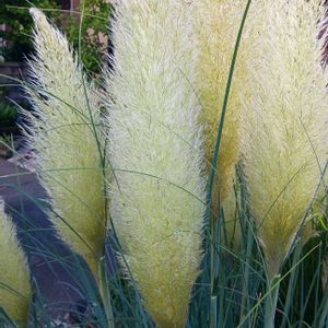 今の庭のフォーカルポイントになってるパンパスグラス 矮性ながらモッフモフで遠くからも目立ちます 全草が美しいのに、隣家がフレームインするので引きで撮れないのが残念~