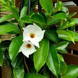 暖かい部屋に入れて冬越しさせたマンデビラが開花🤍 植え替えしてないけど今年もいけるかなぁ