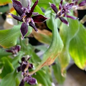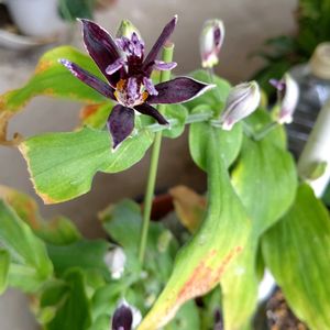 ㊗️開花 夏越し頑張った甲斐があった😭 1⃣キイジョウロウホトトギス 1輪だけだけど嬉しい🥰 ホトトギス黒花:特有の斑点がないタイプ 2️⃣ホトトギス富士の雪(園芸品種) 夏に切り詰めて正解( •̀∀•́ )b