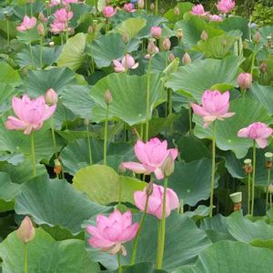 こちらの蓮は広い池に咲いている古代蓮と甲斐姫です 甲斐姫は行田蓮とアメリカ黄蓮の中間の黄紅色でとても優しい色の蓮です 蕾は濃い色ですが咲き進むと色が薄い黄色になるようです 最後までありがとうございました 8/8